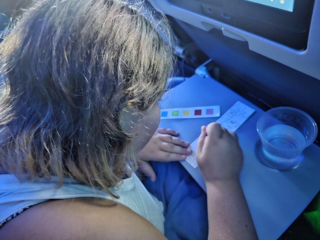 Towards the end of our 8 hour flight my daughter started getting restless and struggling with her emotions and I was so happy that I had not shared this purchase with her yet. She was so excited to have the opportunity to paint and used the painting as a thank you card for her favorite flight attendant. I was thankful for the opportunity to let her be creative (and quiet) and to help teach her how much a simple kind word can brighten other's day! Thank you for such a great and easy to use, low mess craft!!!