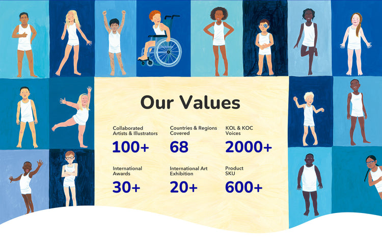 Every product we design maintains innocence, permeating art aesthetics and boundless imagination throughout. We hope that children can create their own worlds through our products.